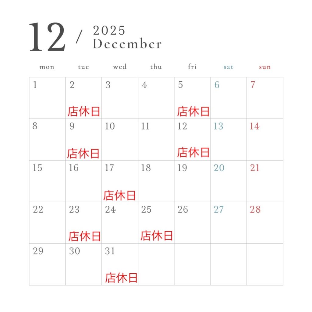 12月のお休みのお知らせ