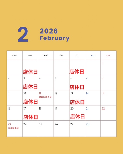 2月のお休みのお知らせ
